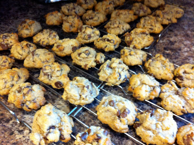 Hershey bar in addition to the chips. It was always so good, having the mix of flavours from the two types of chocolate. Then we discovered plain milk chocolate chips and we stopped using the chocolate bar all together. it was just more work when you could simply pop open a bag of milk chocolate chips. Well, lately we've gone back to the semi sweet, simply for the reason that you can only buy the larger bags in semi sweet. And with the rate that I go through chocolate chips, you kind of want the economy bag. Unfortunately, I haven't been finding the cookies I've been making lately as good/satisfying as they should be and I think I just figured out why I'm so in love with this recipe. I reintroduced the semi sweet chips/milk chocolate bar combo yet again. Hmm, so good. Such an easy trick to exponentially improve your cookies.