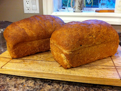 The reason I'm posting about this bread in particular is because it took a bit for me to track down a whole wheat bread recipe that does not contain any dry milk powder. You see, I'm fine if a recipe calls for milk (like a lot of recipes do) because I can just sub it out for a non-dairy alternative. It's when dry milk powder is required that I find I have a problem and have to pass on the recipe. Now I'm sure there is a way around it, but my laziness led me to this recipe so I can't really complain.