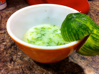 The original recipe that I used called for lemon juice and lemon zest. Well, we always have a bottle of lemon juice in the fridge so that was simple enough, but we don't buy lemons all that often. We do buy limes and so I usually use the zest from the limes and the juice from the bottle. It works, and I get pretty green flecks in stuff. Anyway, so I used 7 limes in this recipe because they were pretty tiny. You'd probably only need 3-4 lemons. But, I was left with 7 zested and unjuiced limes. What to do, what to do? Oh, I know, this weekend is the long weekend. I'll make margarita mix. So, stay tuned for this adventure.