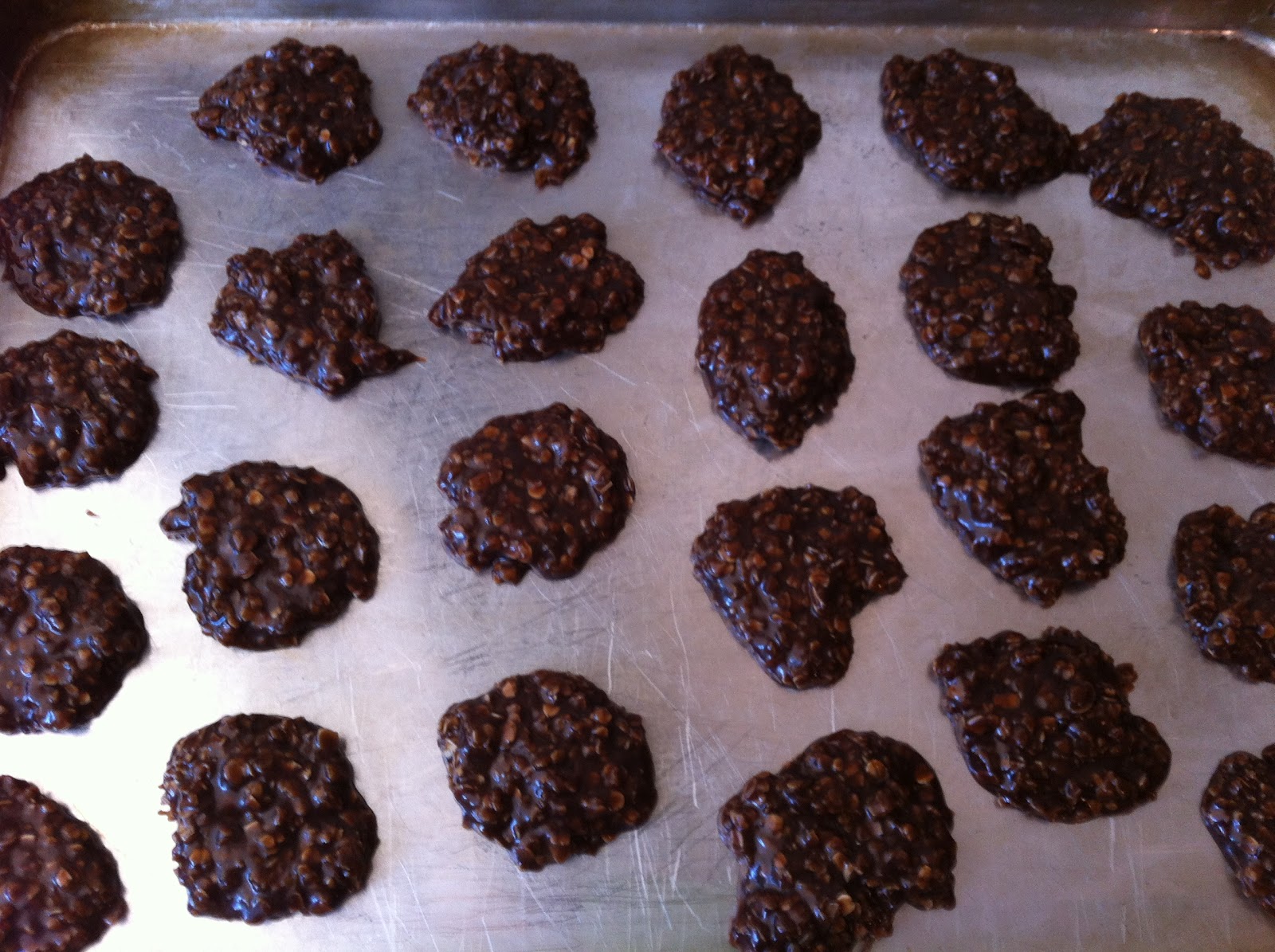 Unfortunately, I'm still ovenless. Meaning that I'm also cookieless. I've now officially cleared out the freezer of every extra cookie I had hidden away. So I went on a hunt-a rather difficult hunt actually-to find a no-bake cookie recipe. What I came up with was this one. It seems that basically all the no-bake cookies are only a slight variation from this one. Some use less peanut butter or more or less oatmeal, or a different amount of vanilla, but for the most part they are the same.