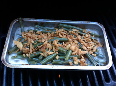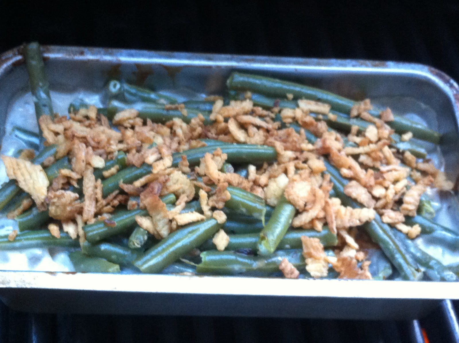 I've never really had any desire to make this dish until we went to Costco and bought a huge bag of these Crispy Fried Onions. They were little shavings of onions that had been fried and then packaged up to be used on salads, burgers or casseroles. So, that's what brought me to making this dish. I found it okay, not great, but okay. But that could have been because the beans we got were kind of rubbery and not so stellar. Others that tried it really liked it. But, I like vegetables just as vegetables, they don't need to be all dressed up for me to like them, so that may have been another reason.
