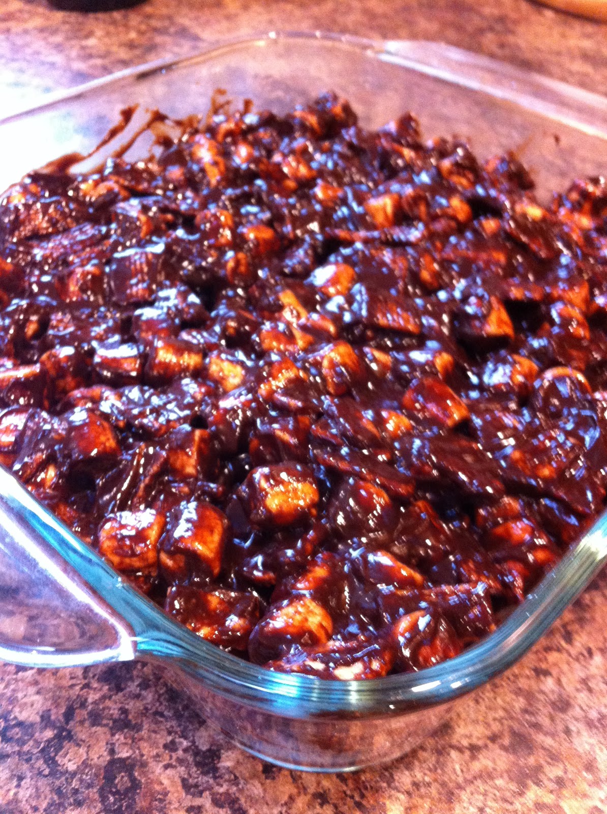 ~Spoon into a greased 8x8 pan and cool in the refrigerator for 1-2 hours.