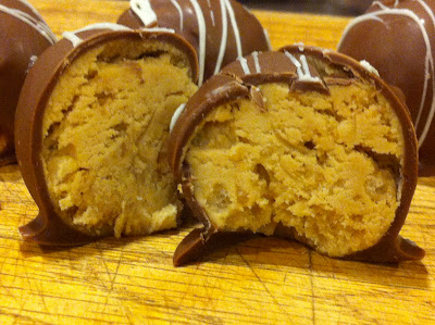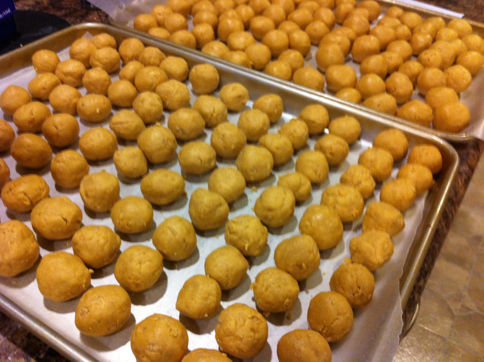 The recipe I'm listing is already a doubled recipe. Do not double it again. I repeat, DO NOT! It won't fit in your mixing bowl, even your 5 quart, professional class bowl. I learned the hard way and ended up with 160 Buck Eyes, which took forever to roll and even longer to dip.