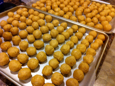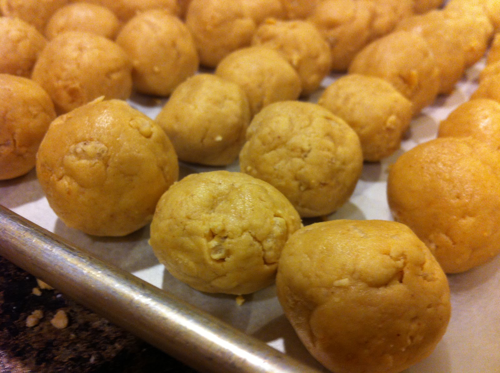 ~Roll into balls and place on a waxed paper lined cookie sheet.