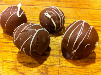 ~Melt the milk chocolate in a microwave safe dish and dip each peanut butter ball and place back on the waxed paper.