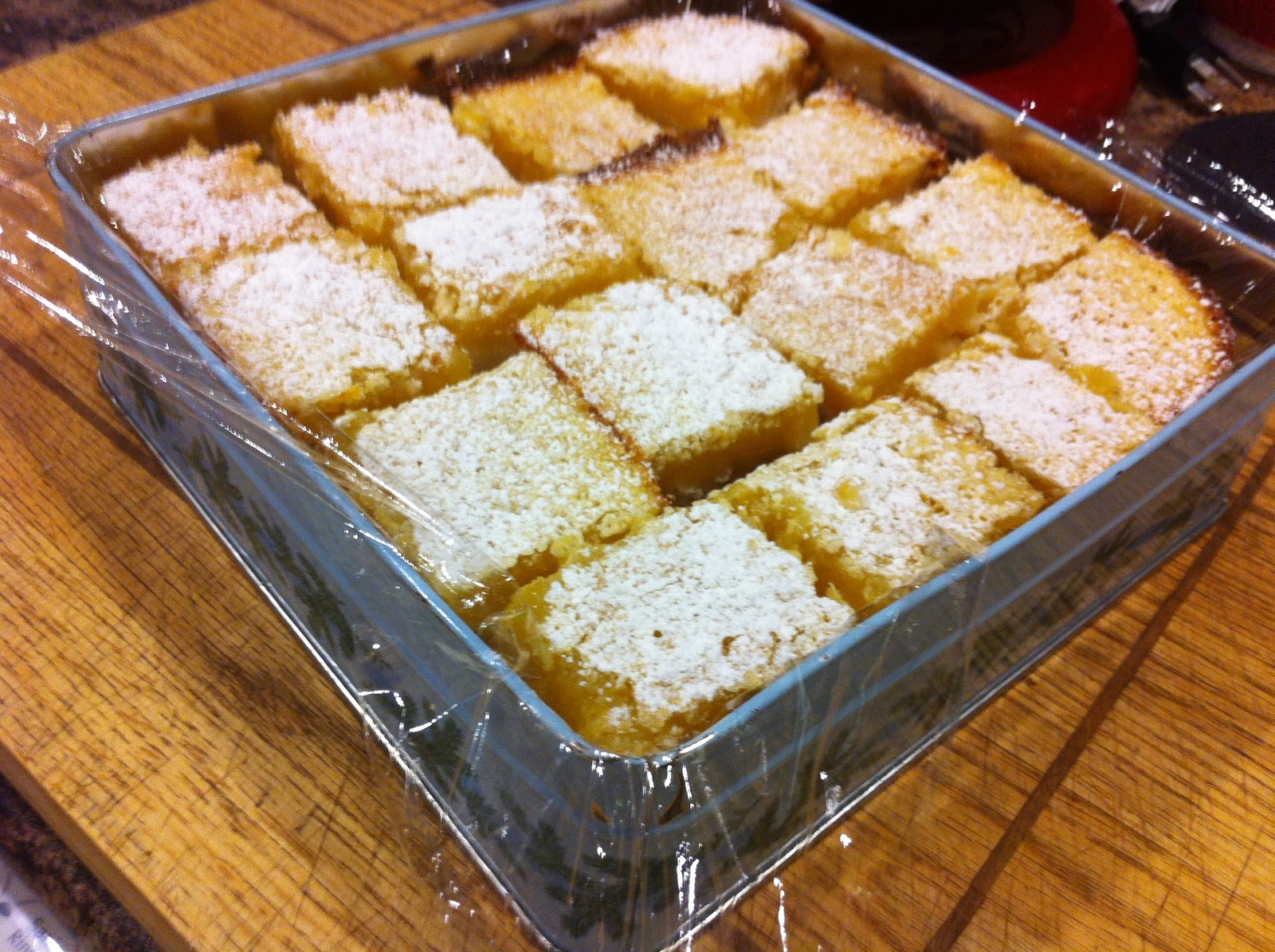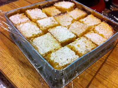 I was walking through Costco a few weeks ago and got really excited when I saw they had in cases of Meyer Lemons. I've heard so much about them, but I've never seen anyone get them in. So I scooped up a case with the intentions of making lemon curd with them. Well, they sat in the garage for a while and I went about my Christmas Baking, until one day I realized in a panic, I'd pulled all my Christmas Recipes, but I'd forgotten one very important one, Lemon Square! Then I got really excited because I knew I had these untouched Meyer Lemons just waiting to be used, and really, I needed to make something else besides curd, because I don't need 18 Lemons worth of curd. Then the harsh reality struck. You need an oven for Lemon Square.