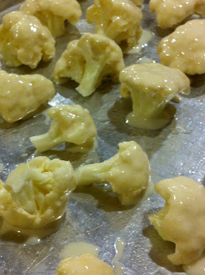 ~Dip each piece of cauliflower into mixture and let excess drip off.
