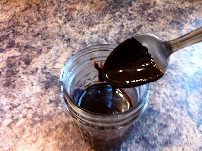 Anyway, this is a little bitter as far as my likings go. If I were to be making this for an ice cream topping, etc. I probably would be increasing the sugar a little bit. But then again, I always have found chocolate syrup to be a bit bitterer than I like. So I guess this is pretty normal then. The one thing I do like about this recipe is that it can easily be scaled. The recipe I'm going to share makes about 1 1/2 C. of sauce. But because I only needed a couple of tablespoons, I easily was able to make only 1/3 of the recipe, and I didn't have to fiddle around with odd measurements. It just divided perfectly.