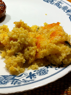 ~When quinoa is cooked, scoop into egg mixture and mix to evenly coat.