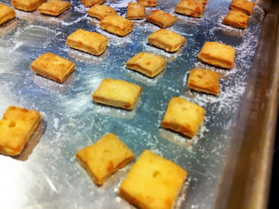 One thing for certain, roll them thin. Like really thin. The ones that worked the best for me were the ones that I could see the colour of the countertop underneath them coming through. They puff up. So unless you want little cracker cubes, roll them thin. I though I had them thin enough, I didn't. Not that it made them taste any worse. They just weren't as crunchy right out of the oven.