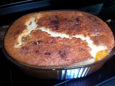 Until I decided to trust Paula Deen's recipe. Because if she can't make a good cobbler, I don't know who could. And it was magical. Why did every recipe I found fail to mention that the cakieness on the top is anything but dry? As it moves up through the gooey peaches it gets all these amazing flavours. Then once it arrives at the top it has just the right sugar and butter amounts to caramelize and have an almost candy like coating over the top. All the while, the fruit on the bottom is so syrupy and delicious.