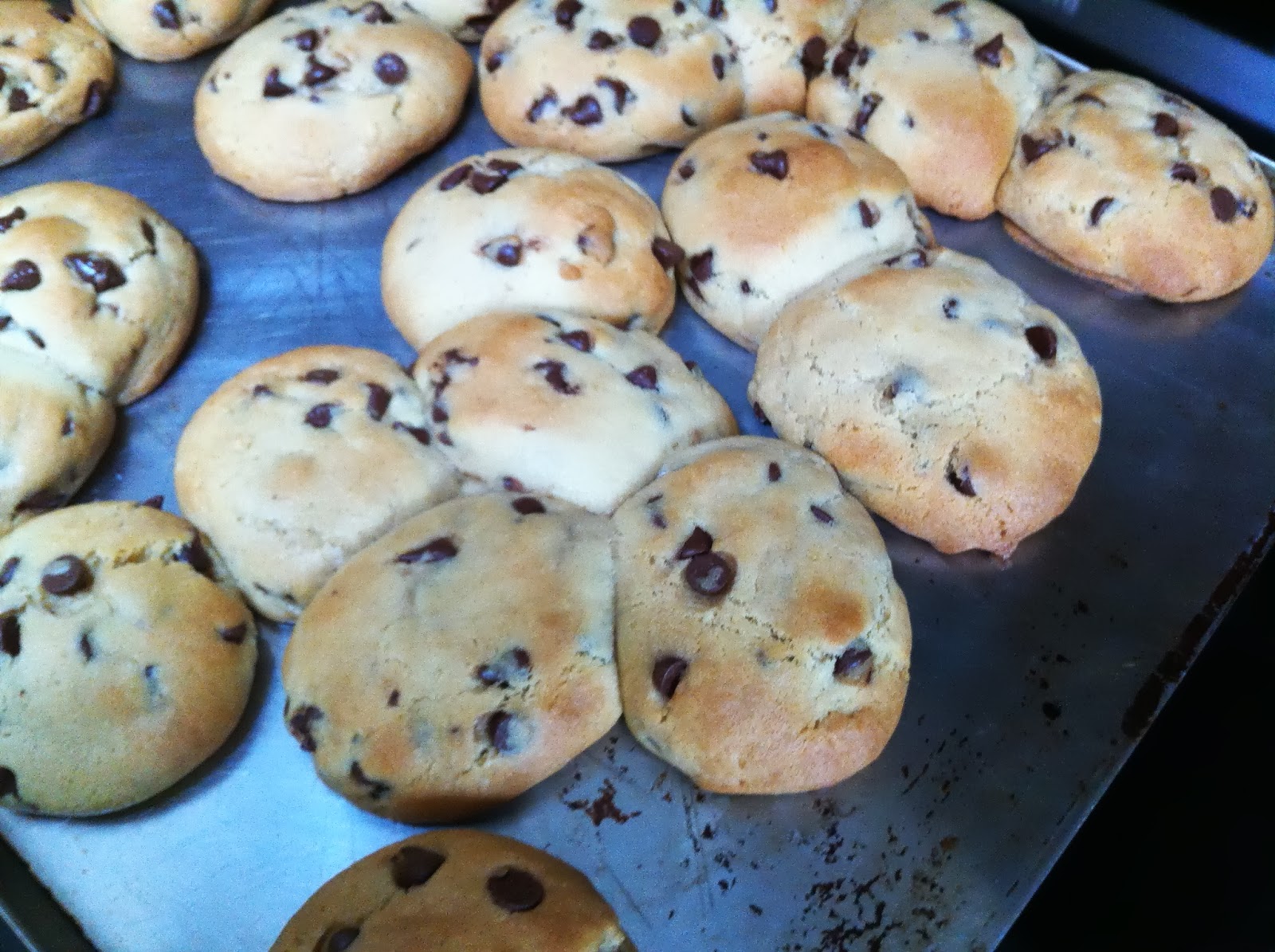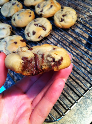 One mistake I did make was on my 3rd cookie sheet I put in the oven (I had made a double batch) I had two extra cookie dough balls. Not wanting to deal with having to clean up one of my already used sheets for just 2 cookies I decided to rearrange and try to cram these extras onto the sheet. Unfortunately, my 3rd cookie sheet is the smaller of them all and it was already crammed to begin with. When I pulled them out of the oven it looked like I had make chocolate chip cookie monkey bread. It all tasted the same, but as a warning, because these are rolled taller, they appear like you can squish them onto a cookie sheet because they don't take up as much of a footprint when unbaked. Just remember that they do spread (even though they still are thick), so watch for that.