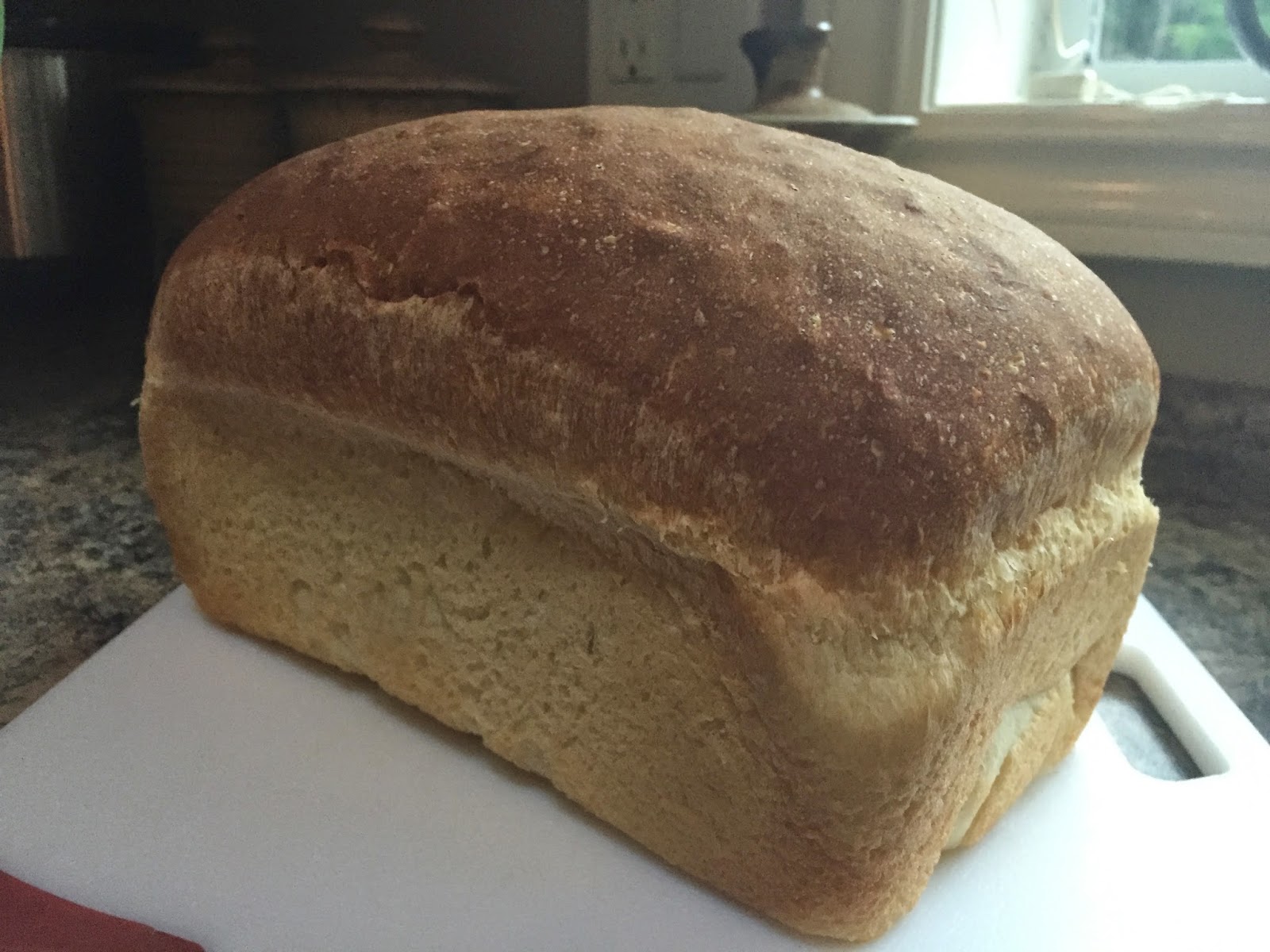 I don't usually eat white bread, but I haven't been making bread lately and my whole wheat flour turned and I wasn't going to replace it until I knew I had time to warrant buying another sack, so I made white bread. It was good as far as white bread goes. A good crust, dense yet fluffy inside, but kinda of lacking in the flavour that I'm so used to with whole wheat. But the great thing about this bread is how nicely it cuts. A lot of fresh bread just ends up a mess, or you have to cut thick slices in order to cut it, but this cut beautifully and thinly.